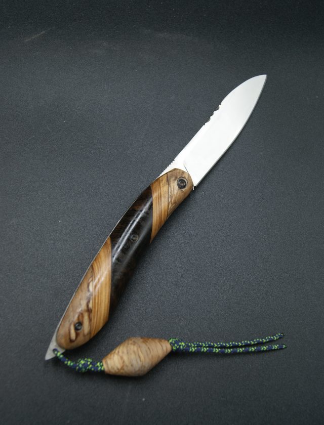 Pour les baroudeurs, les cueilleuses de champignons et les aventuriers en herbe ou chevronnés. Alliant la robustesse d’un fixe et la transportabilité du pliant, je n’en propose que quelques pièces sur mon site, car je trouve que ce genre de couteau reste une pièce à élaborer ensemble, sur mesure avec vos choix de matériaux, de forme et dimensions de lame en fonction de ce que vous voulez en faire.