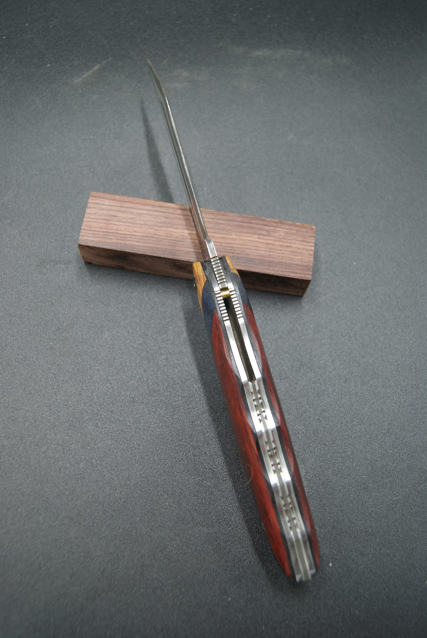 Couteau pliant liner lock axe réglable vis tête H sur rondelles de béryllium.