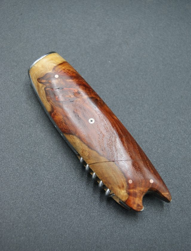 - Composition manche : Intercalaire G10 noir, hêtre échauffé, olivier et ziricote