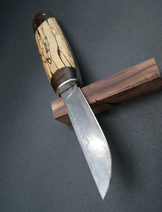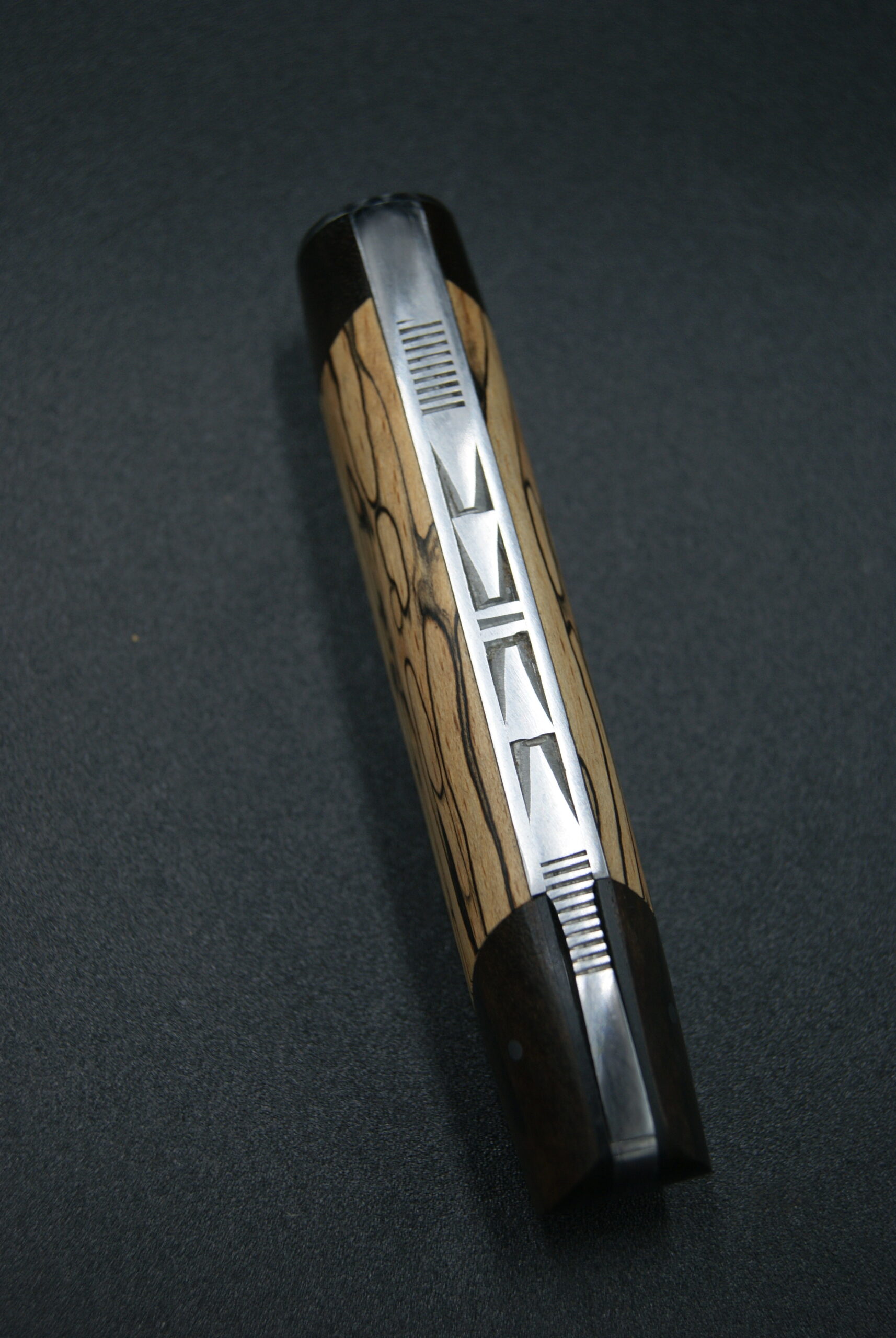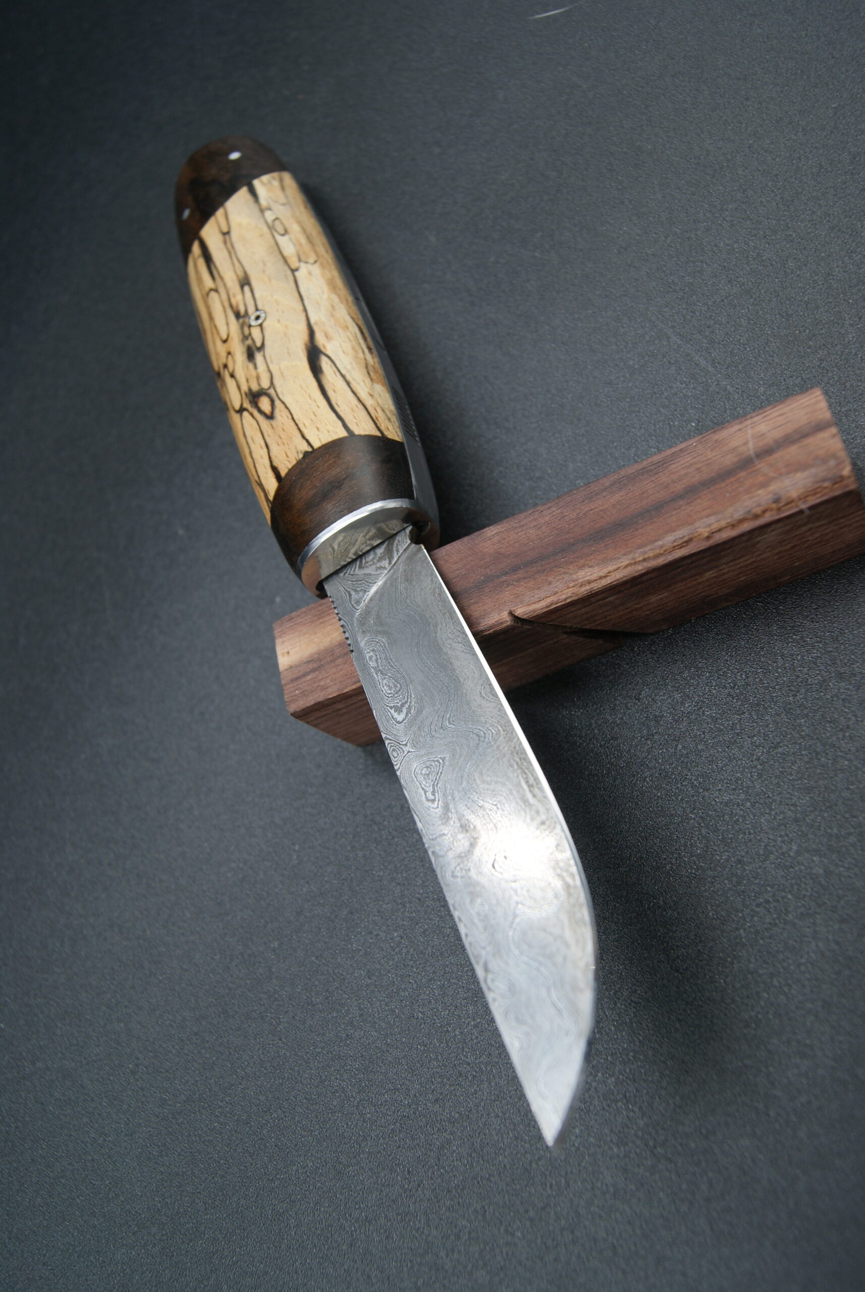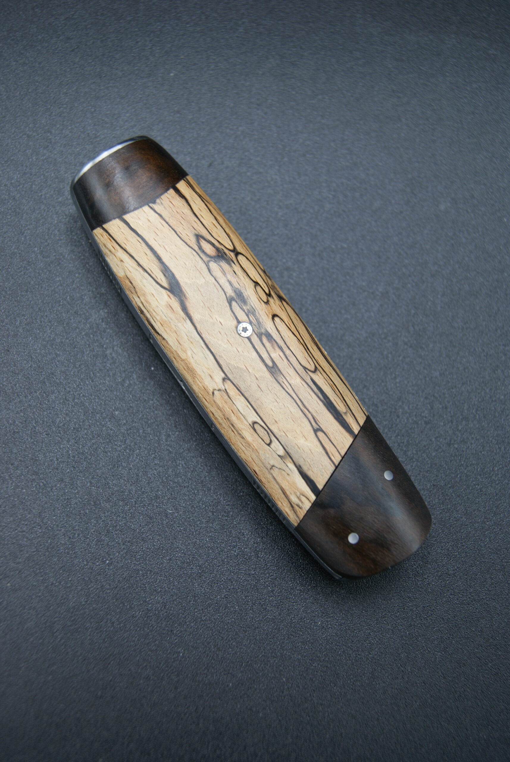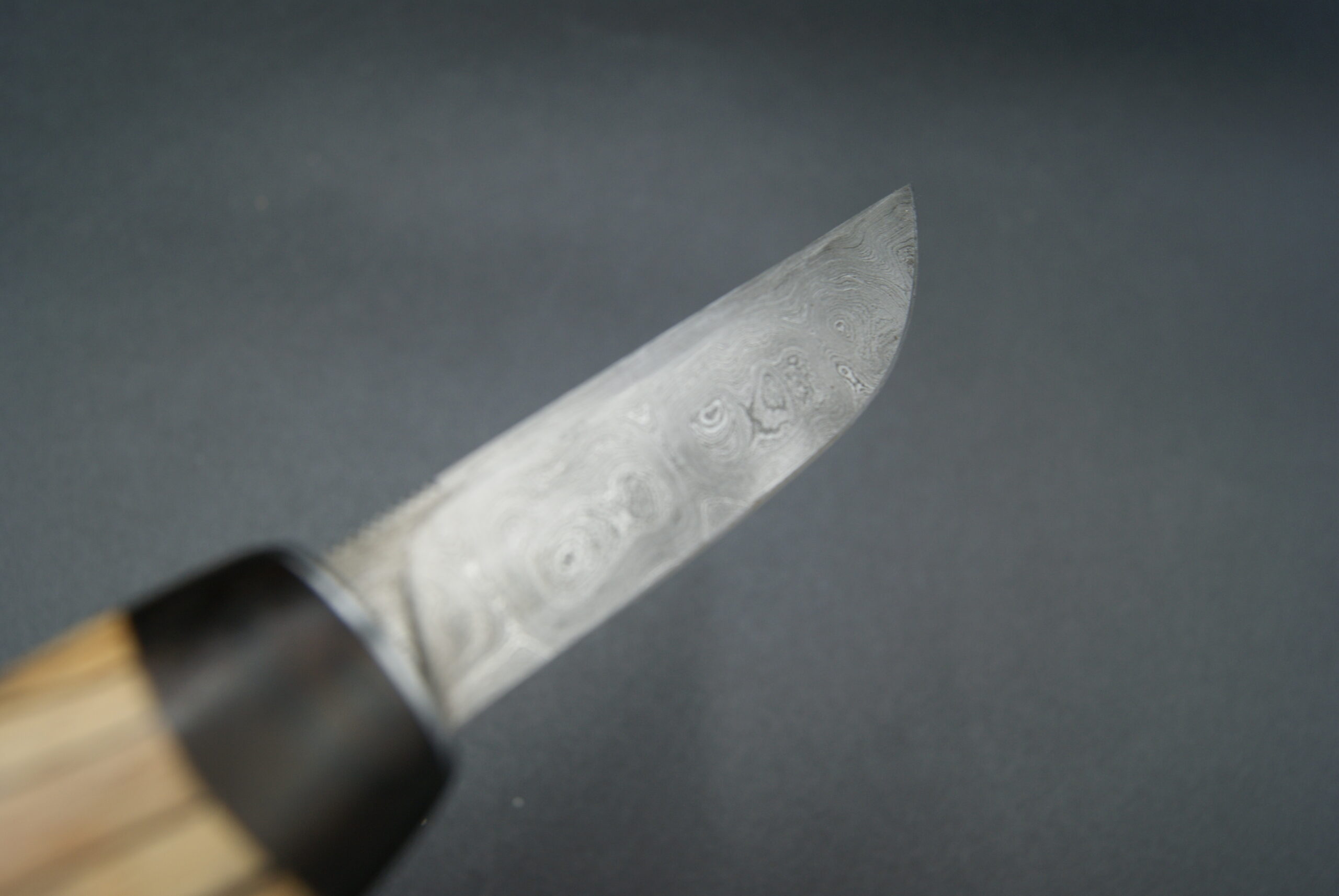 - Acier lame : Damas carbone 600 couches XC75 et 15N20